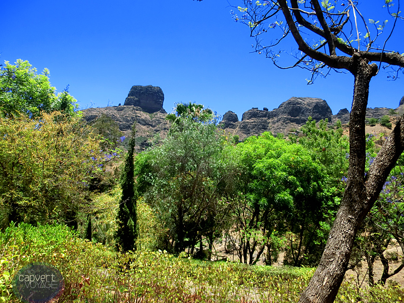 Weil Santiago die Insel eines klaren und makellosen Himmels ist mit tiefblauen Farben ist, im Zusammenspiel mit dem Gebirge Malagueta und dem Berg Pico da Antónia (1. 394m).